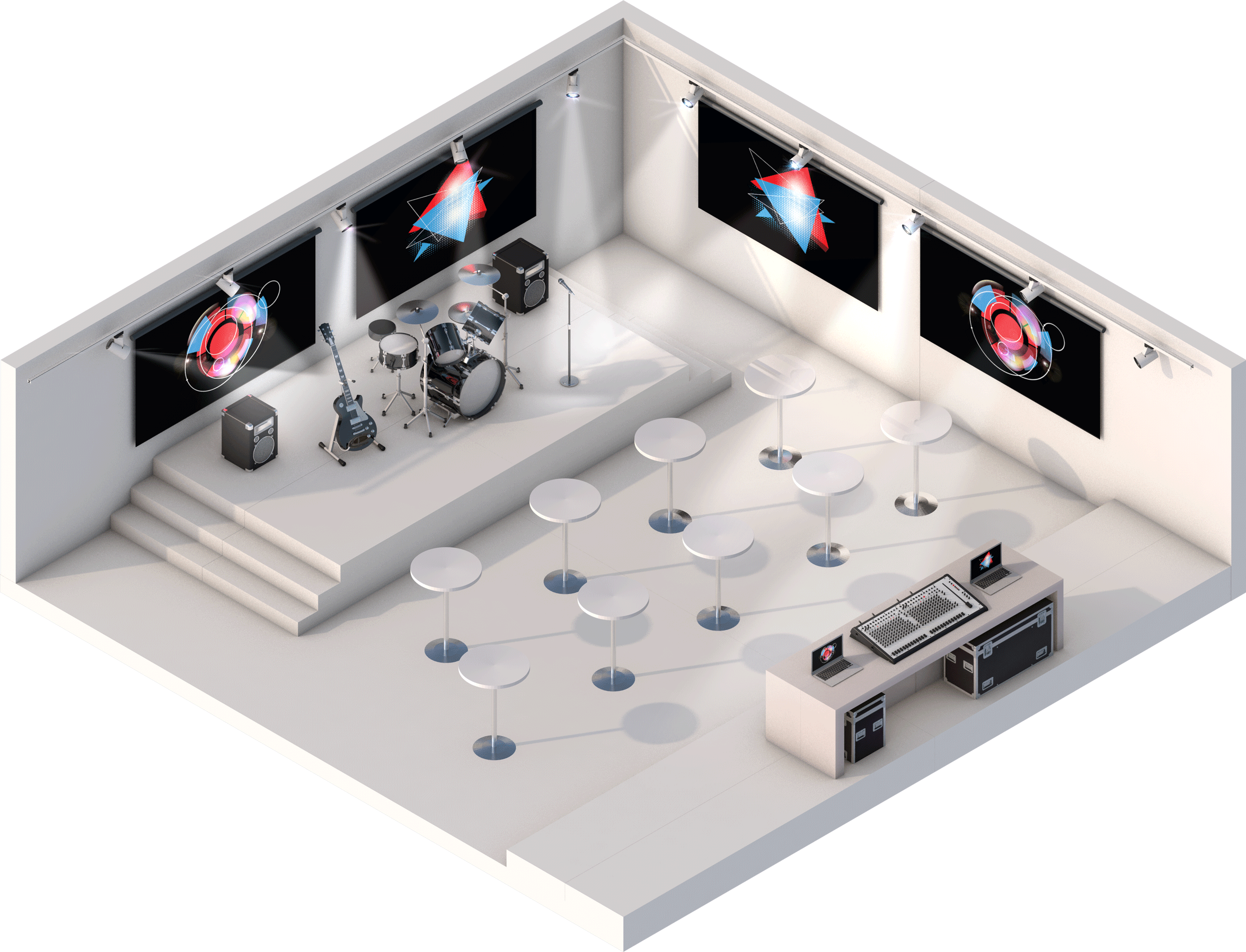 Выполним видео и звуковое оборудование кино / концертных залов, спортивных объектов для создания высокоуровневого мультимедийного комплекса, интегрируем сопутствующие технологические системы